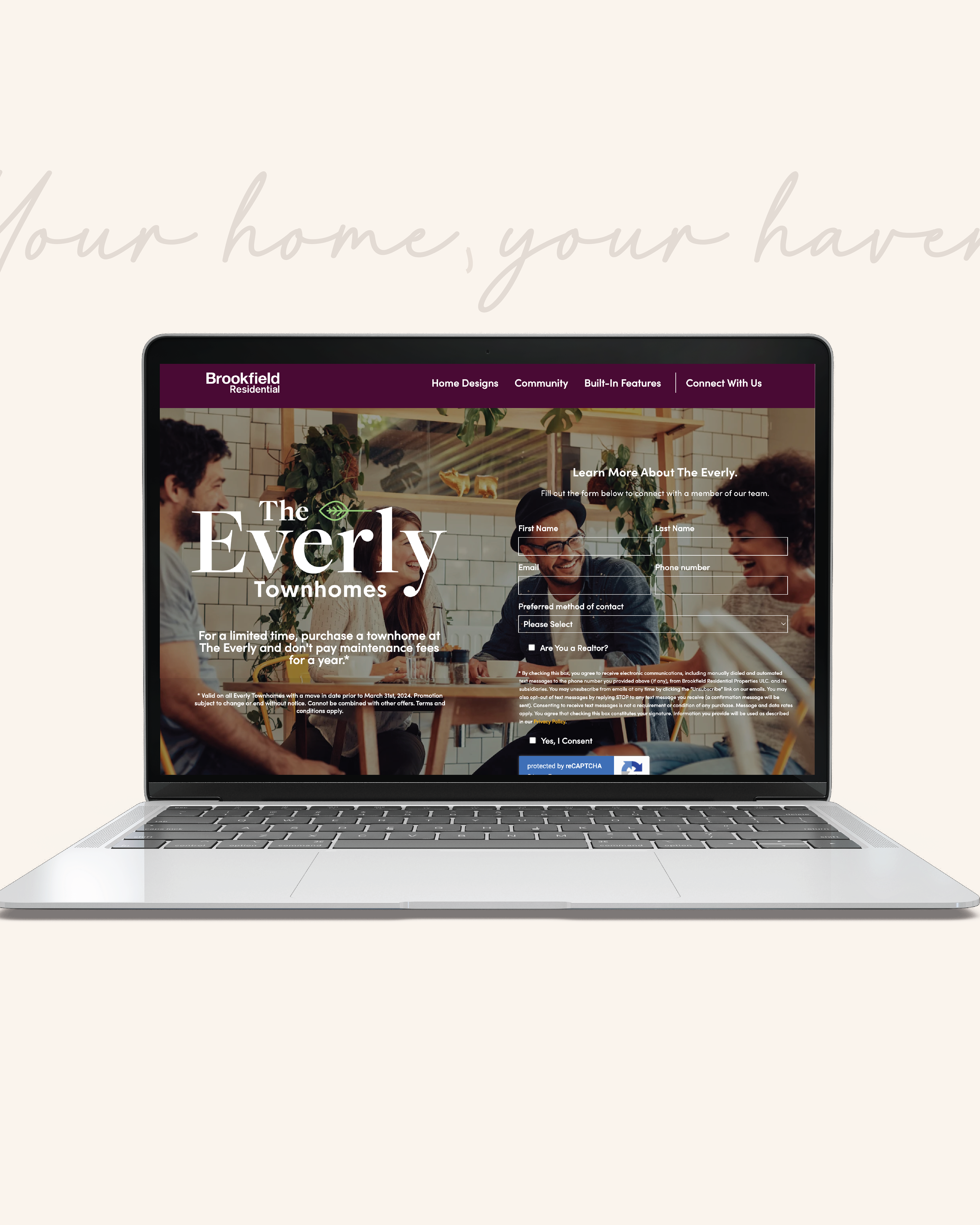 As an employee at Vision Creative, I had the opportunity to be part of the creative team that developed the name and visual identity for The Everly, a townhome development by Brookfield Residential. From creative brainstorming and naming to logo design and overall visual identity, I was part of a creative team that guided the project’s direction. Our work extended across multiple touch points, including the website, a presentation centre, and advertisements.